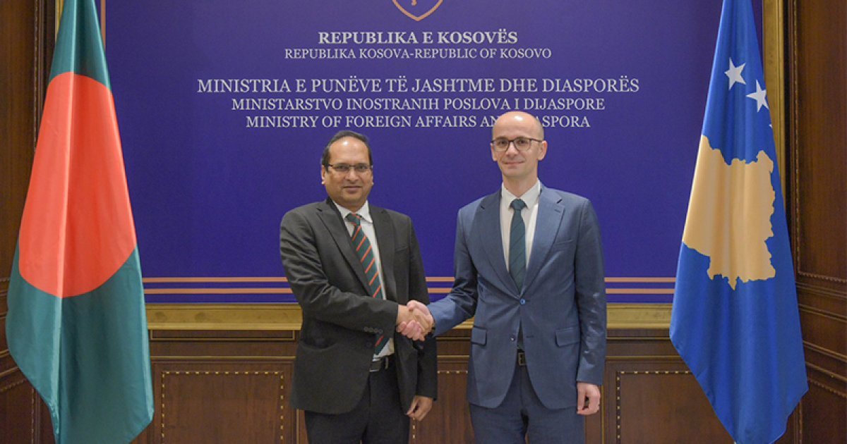 কসোভোতে বাংলাদেশের নতুন অনাবাসিক রাষ্ট্রদূত এসটিজেড মুহাম্মদ জুলকার নাইনকে স্বাগত জানিয়েছেন পররাষ্ট্র ও প্রবাসী উপমন্ত্রী ক্রেশনিক আহমেতি। উপমন্ত্রী আহমেতি রাষ্ট্রদূতকে স্বাগত জানান। উপমন্ত্রী আহমেতি দ্বিপক্ষীয় সম্পর্ককে এগিয়ে নিতে এবং পারস্পরিক স্বার্থের ক্ষেত্রগুলোতে সহযোগিতা জোরদার করতে কসোভোর আগ্রহ প্রকাশ করেন। তিনি বিশেষ করে অর্থনৈতিক কূটনীতি এবং উভয় দেশের ব্যবসায়ী সম্প্রদায়ের মধ্যে যোগাযোগ বিকাশ বাড়ানোর কথা বলেন।