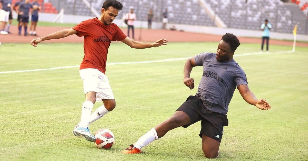 বাংলাদেশে নিযুক্ত বিদেশি কূটনীতিক ও বাংলাদেশ সরকারের উপদেষ্টাদের মধ্যে একটি প্রীতি সিরিজ আয়োজন করেছে জাতীয় ক্রীড়া পরিষদ। যে সিরিজের দ্বিতীয় ম্যাচটি অনুষ্ঠিত হয়েছে শনিবার। জাতীয় স্টেডিয়ামে অনুষ্ঠিত ম্যাচটিতে উপদেষ্টাদের দলকে ৩-০ গোলে হারিয়েছেন কূটনীতিকরা। এর আগে জুনে একই ভেন্যুতে অনুষ্ঠিত প্রথম ম্যাচে উপদেষ্টাদের দল জিতেছিল ১-০ গোলে। ফলে তিন ম্যাচের সিরিজে এখন ১-১ সমতা। ডিসেম্বরে আয়োজিত হবে শিরোপা নির্ধারণী ম্যাচ।
