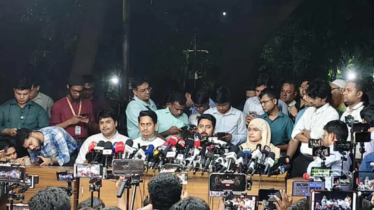 বুধবার (২২ অক্টোবর) সন্ধ্যা সাড়ে ৬টার দিকে অন্তর্বর্তী সরকারের প্রধান উপদেষ্টা অধ্যাপক মুহাম্মদ ইউনূসের সঙ্গে সাক্ষাৎ শেষে রাষ্ট্রীয় অতিথি ভবন যমুনা থেকে বেরিয়ে সংবাদ সম্মেলনে নাহিদ ইসলাম বলেন,