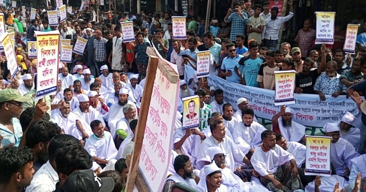 মানববন্ধনে অংশ নেওয়া বক্তারা বলেন, দিনাজপুর-২ আসন থেকে বিএনপির প্রার্থী হিসেবে সাদিক রিয়াজ চৌধুরীকে মনোনয়ন দেয়া হয়েছে। সাদিক রিয়াজ চৌধুরী ওই আসনের আওয়ামী লীগের সাবেক সংসদ সদস্য ও নৌ পরিবহন প্রতিমন্ত্রী খালিদ মাহমুদ চৌধুরীর ঘনিষ্ঠজন এবং সম্পর্কে ভাতিজা। আওয়ামী লীগের শাসনামলে সাদিক রিয়াজ চৌধুরীর নামে কোনও মামলা হয়নি ঘনিষ্ঠতা থাকার কারণে। খালিদ মাহমুদ চৌধুরীকে পালিয়ে যেতেও সহায়তা করেছেন তিনি।