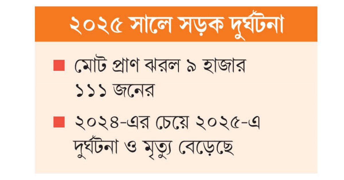 সদ্য বিদায়ী বছর ২০২৫-এ দেশ জুড়ে ৬ হাজার ৭২৯ সড়ক দুর্ঘটনায় ৯ হাজার ১১১ জনের মৃত্যু হয়েছে। এসব ঘটনায় আহত হয়েছে ১৪ হাজার ৮১২ জন। আর দুর্ঘটনাগুলোর মধ্যে মোটরসাইকেলে ২ হাজার ৪৯৩টি দুর্ঘটনা ঘটেছে, যা সড়ক দুর্ঘটনার ৩৭ দশমিক শূন্য ৪ শতাংশ। এতে মারা গেছে ২ হাজার ৯৮৩ জন। আহত হয়েছে ২ হাজার ২১৯ জন; যা মোট নিহতের ৩২ দশমিক ৭৪ শতাংশ।