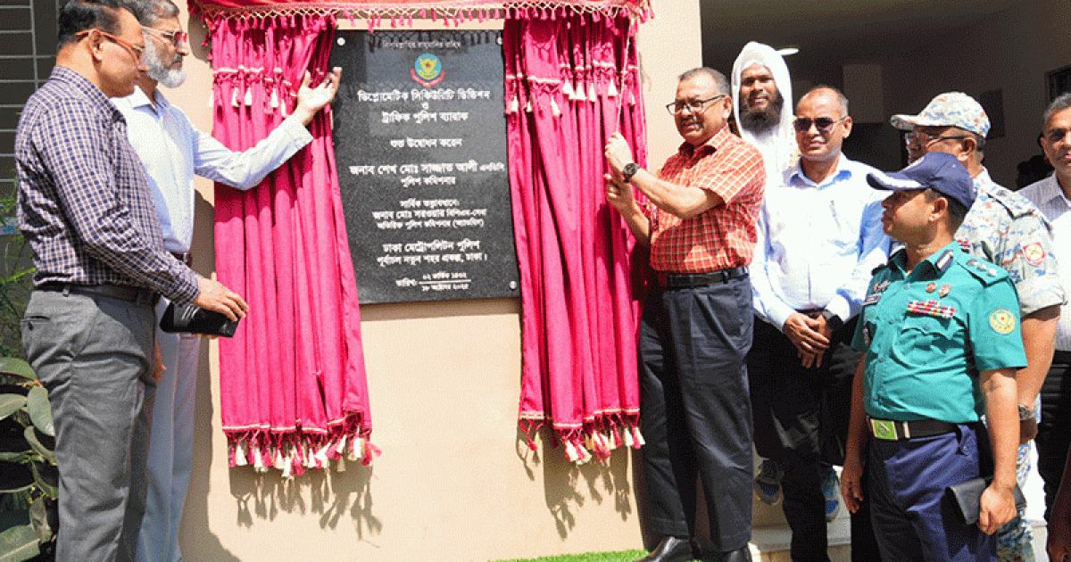 রাজধানীর পূর্বাচল নতুন শহর প্রকল্পে ঢাকা মেট্রোপলিটন পুলিশের (ডিএমপি) ডিপ্লোম্যাটিক সিকিউরিটি ডিভিশন ও ট্রাফিক ডিভিশনের জন্য নির্মিত পুলিশ ব্যারাকের উদ্বোধন করেছেন ডিএমপি কমিশনার শেখ মো. সাজ্জাত আলী।