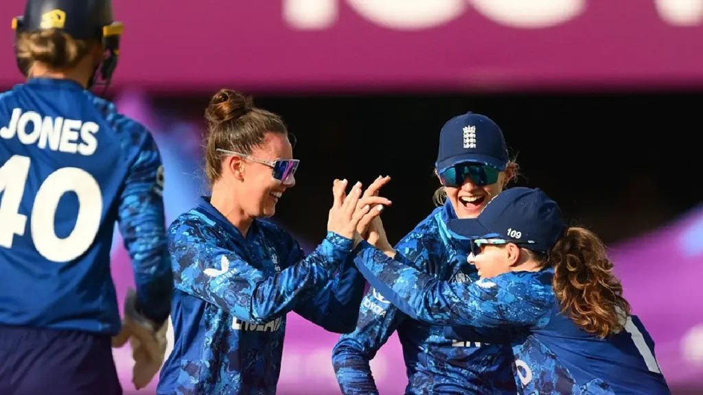 সাউথ আফ্রিকা: ৬৯ (২০.৪ ওভার) (সিনোলা জাফতা ২২, লিনসে স্মিথ ৩-৭, ন্যাট স্কিভার-ব্রান্ট ২-৫, চার্লি ডিন ২-১৪, সোফি এক্লেস্টোন ২-১৯)