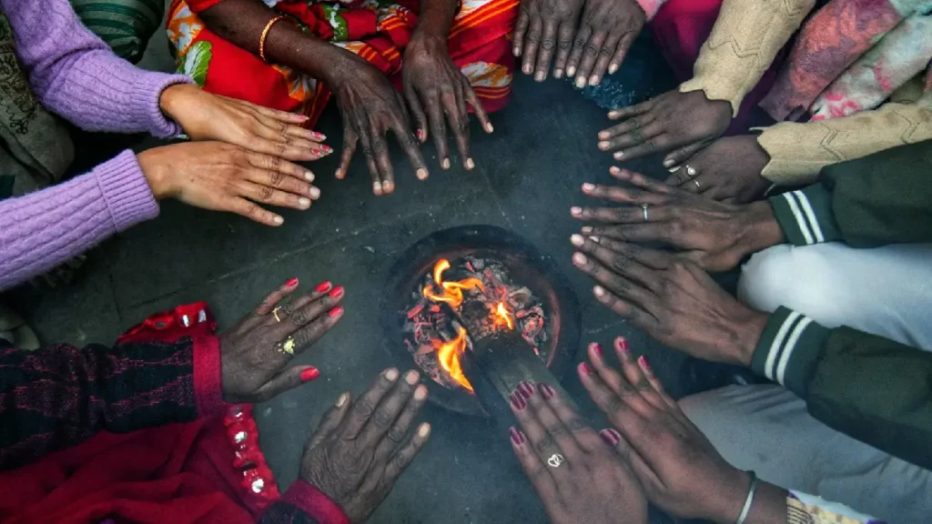 কলকাতাতেও শীতের দিনে আগুন পোহানো।