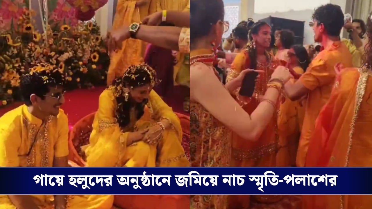 সোশ্যাল মিডিয়ায় স্মৃতি ও পলাশের গায়ে হলুদের যে সকল ছবি ও ভিডিয়ো ভাইরাল হয়েছে তার কোনওটিতে দেখা গিয়েছে, তাঁরা পাশাপাশি বসে রয়েছেন। তাঁদের নিকট আত্মীয় দু’জনের মাথায় গাঁদা ফুলের বৃষ্টি করছেন। কখনও আবার তাঁদের দেখা যাচ্ছে পরিবারের লোকজন ও বন্ধুদের সঙ্গে নাচ করতে।
